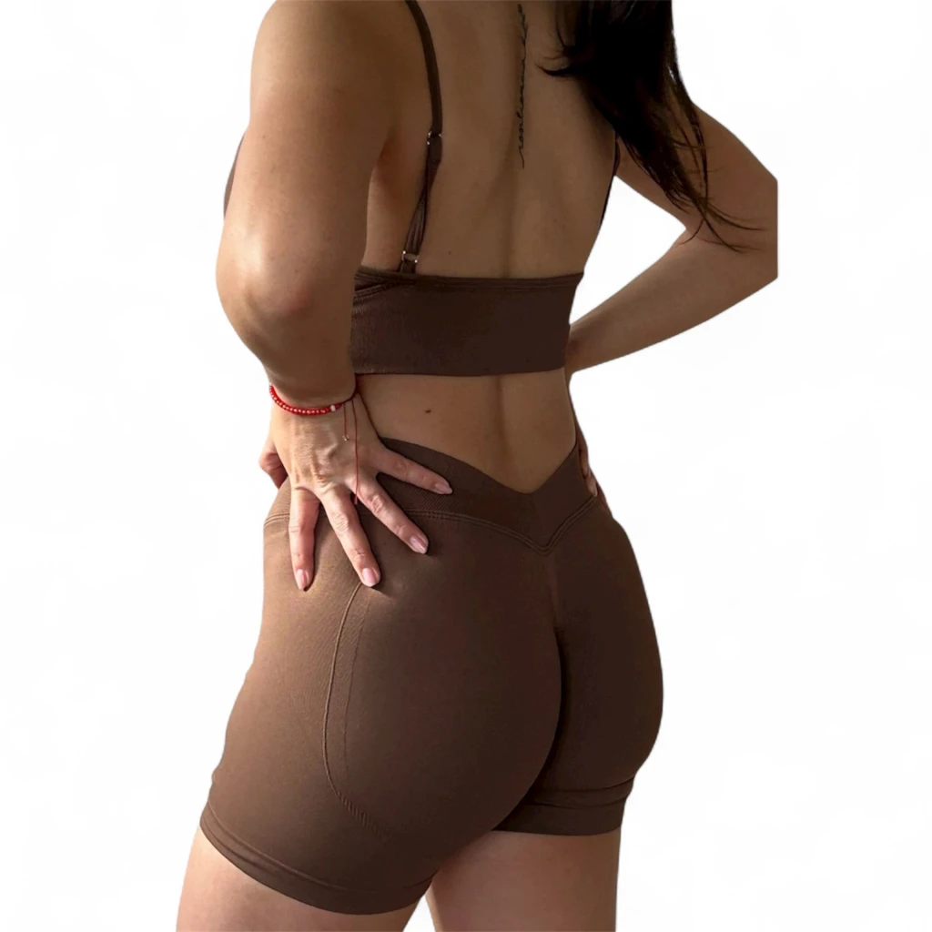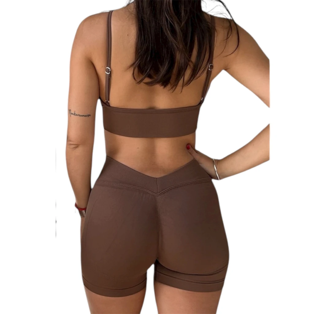Un set en tono chocolate, moderno, urbano y perfecto para destacar dentro y fuera del gym.
