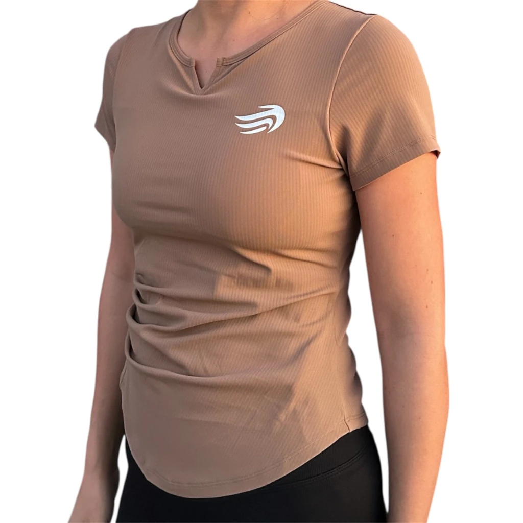 Si buscas soporte y libertad en tu movimiento, esta remera es ideal.